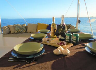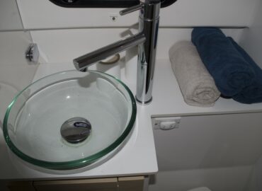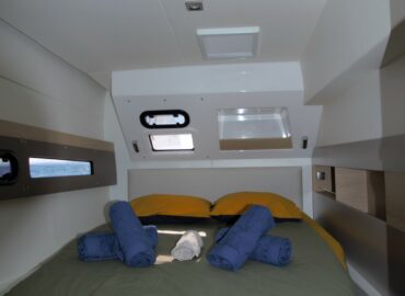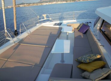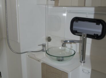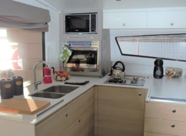 A enormous open spaces with icreased living space with and a sunbathing area. Owner’s cabin and bathroom. Individual bathrooms for each guest cabin. Fully fitted U-shaped galley – American-style fridge with ice maker.