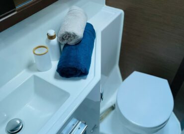 And there is additional living space provided by the forward cockpit, complete with sunbathing area. The helm station is accessible from the deck and the cockpit, making the communication easier between the skipper and crew at all times.